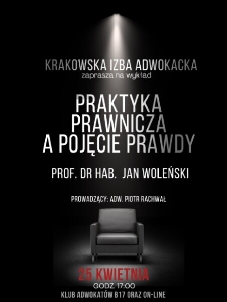 Krakowska Izba Adwokacka zaprasza na wykład prof. dr hab. Jana Woleńskiego - 25 kwietnia 2024r. g. 17:00 w Klubie Adwokatów oraz online