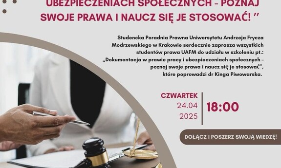 Z ogromną przyjemnością chcielibyśmy zaprosić Państwa na szkolenie przygotowane przez Sekcję Prawa Pracy i Ubezpieczeń Społecznych Studenckiej Poradni Prawnej UAFM.